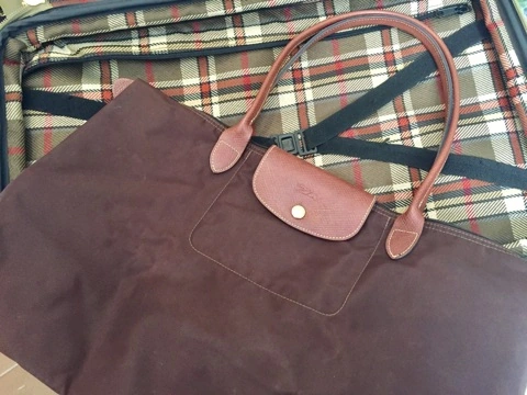 - A Foldable Shopping/ Carry-all Bag. This is one of the most useful things you can carry with you at all times – not just when you are shopping. Carry it in your carry-on bag, then if you get to the airport and your carry-on bag ends up needing to be checked, you can pull out the foldable bag and still have something to hold essential carry on items. Splurge: on a Longchamp Pliage bag. It has classy leather handles and closure and very sturdy and stylish, water-resistant fabric in multiple colors. It can double as a purse or beach bag as needed but folds up to pack. Priceless.